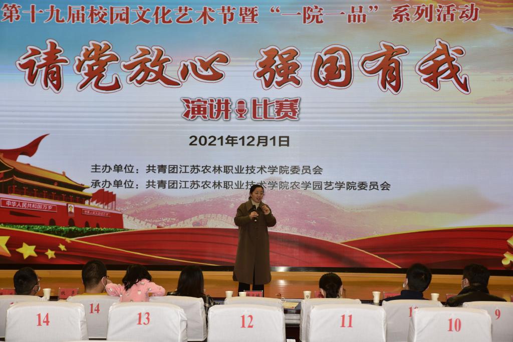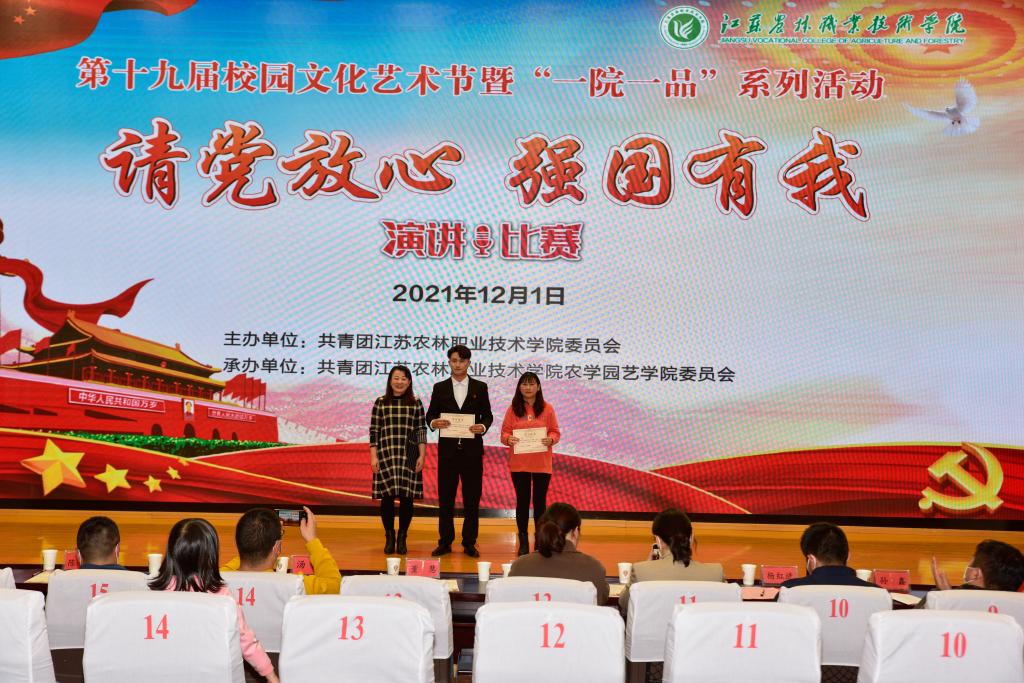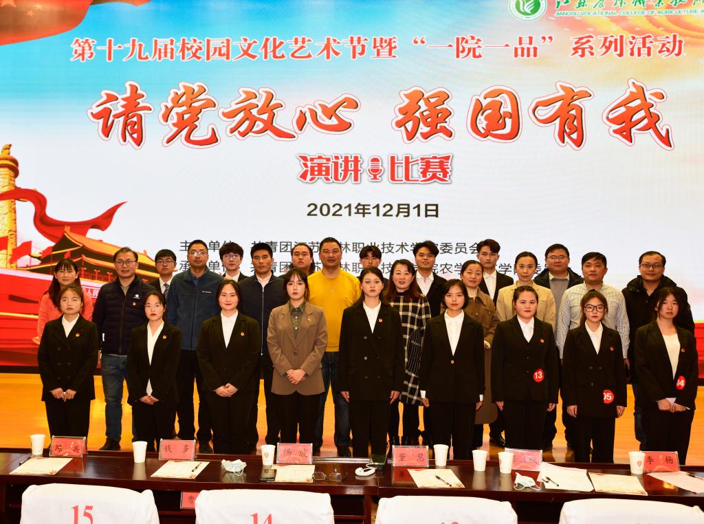 深入学习贯彻习近平总书记在庆祝中国共产党成立100周年大会上的重要讲话精神,展现农林青年积极向上的精神面貌。12月1日晚,由学院团委主办、农学园艺学院团委承办的第十九届校园文化艺术节暨“一院一品”系列活动之“请党放心,强国有我”演讲比赛在图书馆报告厅成功举办。学院团委书记董慧、茅山校区党总支副书记汤波、机电工程学院党总支副书记钱多、信息工程学院党总支副书记陈兵、农学园艺学院党总支副书记王全智出席了活动,马克思主义学院陈立娥副院长、马克思主义学院党总支副书记李杨、办公室副主任杨红进、学工处副处长孙鑫、宣传部副部长唐智担任了本次比赛的评委。2300余名同学通过网络平台观看了现场直播。