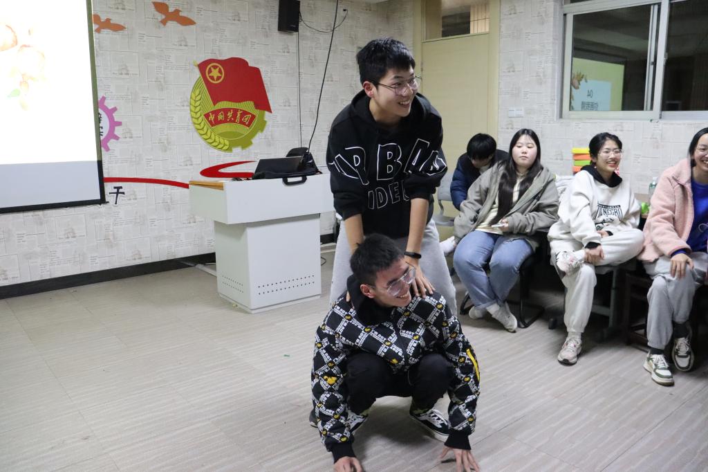 活动中,首先通过“大风吹”的游戏,让大家在游戏中找到自己与同伴们的相同特点,找到椅子坐下,没有椅子的同学则需表演一个节目,展现了同学们的才艺,活跃了活动现场的气氛;随后“你是我的幸运星”游戏,同学们积极参与,寻找自己的成员,考验了同学们之间的默契,进一步拉进了同学们之间的距离;接着,“摸石头过河”让同学们通过交替移动砖头前进,明白了团队沟通、合作的重要性;最后“你画我猜”环节,同学们栩栩如生的表演将愉悦的气氛推向了高潮,同学们相互配合,最终将词语一一猜出。