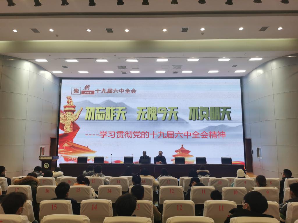 讲座中,马院长以《勿忘昨天 无愧今天 不负明天》为题,从全会充分肯定中央政治局一年工作、一个主题、三个飞跃、四个阶段、四个伟大飞跃、五点意义和十条历史经验等方面对党的十九届六中全会精神进行了深入阐释和分析,从全面吹响建设强国的前进号角和明确要求以优异成绩迎接党的二十大等方面阐述,希望与会同学进一步深学细悟全会精神,不断从党的百年奋斗重大成就和历史经验中汲取前进的智慧和力量。