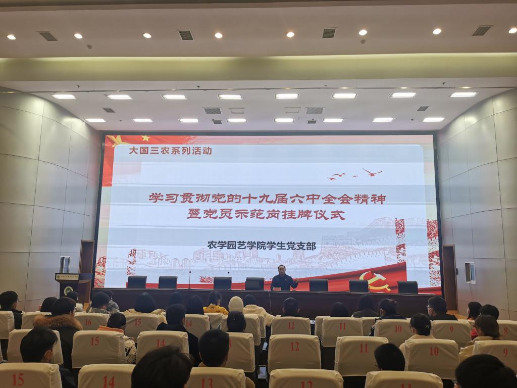 为深入学习宣传贯彻党的十九届六中全会精神,深刻领会党百年奋斗的伟大成就、伟大意义和伟大经验,进一步统一思想、凝聚共识、坚定信心、增强斗志, 2021年12月13日晚,农学园艺学院学生党支部在图书馆报告厅举行了学习贯彻党的十九届六中全会精神专题辅导,邀请马克思主义学院院长马万顺教授作专题辅导讲座。会议由农学园艺学院党总支副书记主持,学生党员、发展对象和部分积极分子等150人参加了讲座。