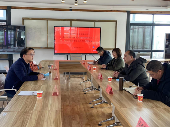 王全智介绍了学院建设、办学现状、办学成效以及发展方向等整体概况,并对江苏农博园、茶博园建设模式和运营情况以及学院校企合作经验、全国党建样板支部创建经验进行了介绍。胡小波介绍了眉山职业技术学院与眉山市国有资本投资运营集团有限公司合作建设眉山现代农业科技园相关工作的目前进展,并希望今后加强交流与合作,共同提高实训基地建设水平。
