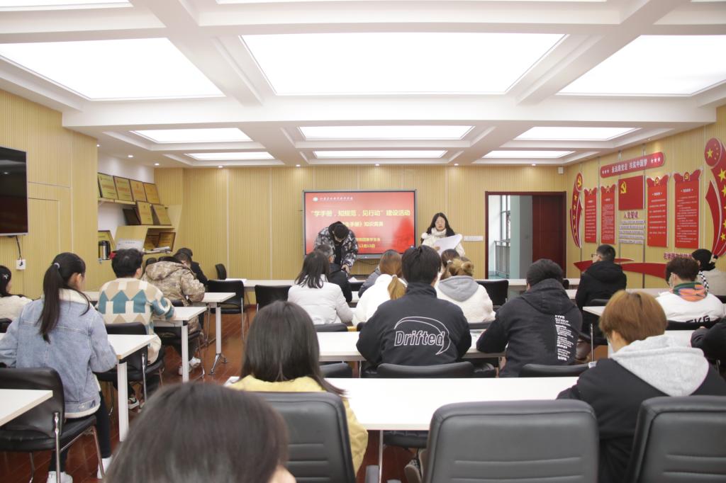 为了引导学生遵守校纪校规,养成知荣明耻,习礼修身的品格自律,引导学生行有所规,学有所范,养成文明言行和“从我做起,从小事做起,从现在做起”的行为自律,树立当代大学生良好的形象。2021年12月15日,农学园艺学院在研发楼二楼会议室举办了“学手册,知规范,见行动”系列活动之学生手册知识竞赛学生手册知识竞赛。