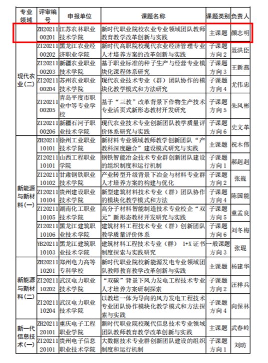 近日,教育部下发《关于公布第二批国家级职业教育教师教学创新团队课题研究项目的通知》,农学园艺学院院长颜志明负责的《新时代职业院校农业专业领域团队教师教育教学改革创新与实践》课题,获批教育部第二批国家级职教创新团队主课题研究项目立项。