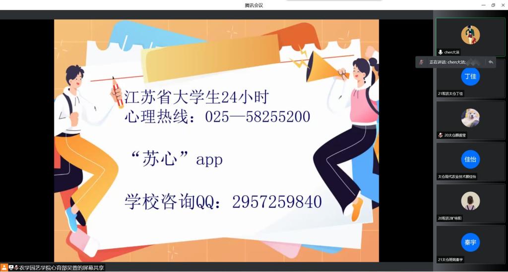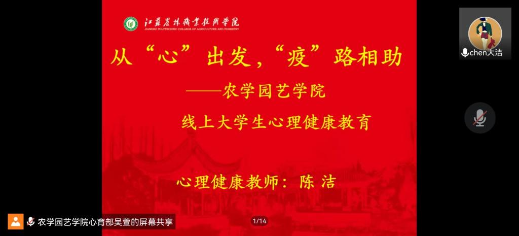 心理健康是高校德育建设的重要组成部分,大学生的心理健康教育关系到大学生的健康成长,2月22日晚6:30,农学园艺学院举办“从‘心’出发,‘疫’路相助”线上大学生心理健康教育。截至目前我院92名滞留苏州未返校的学生参加了本次活动。