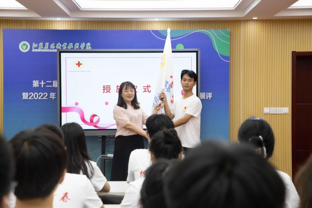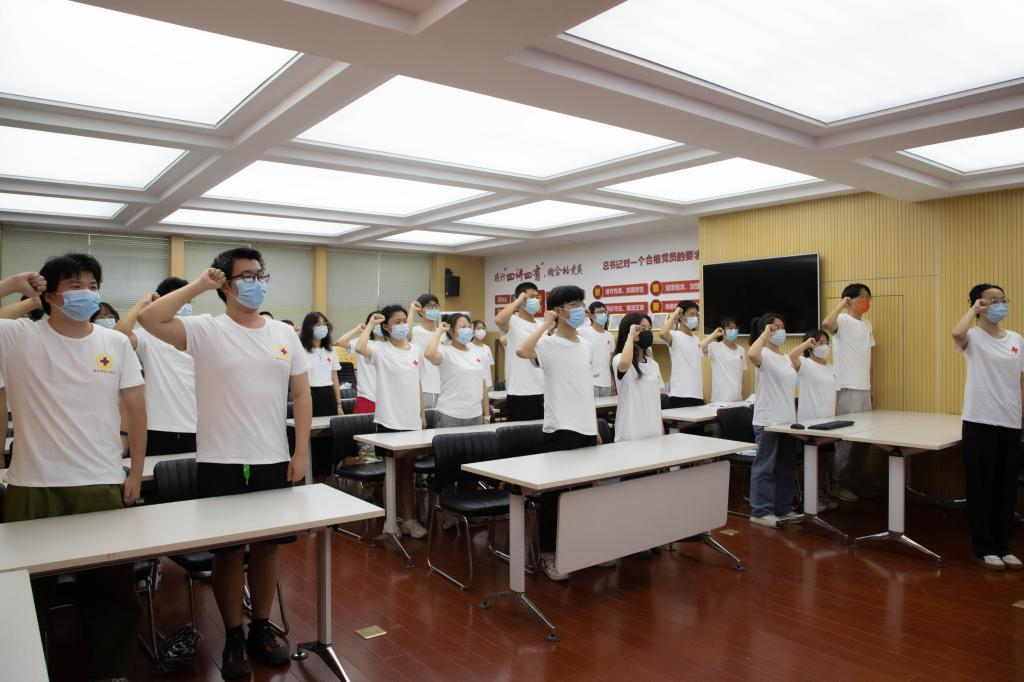 活动中,嵇怡老师介绍了本次社会实践的主要内容及具体安排。随后董慧书记进行了授旗,她嘱咐志愿者们在实践中要遵守服务项目的安排,时刻注意人身安全、财产安全,注意防暑降温,用实际行动发扬“人道、博爱、奉献”的红十字精神。最后志愿者们进行了集体宣誓。