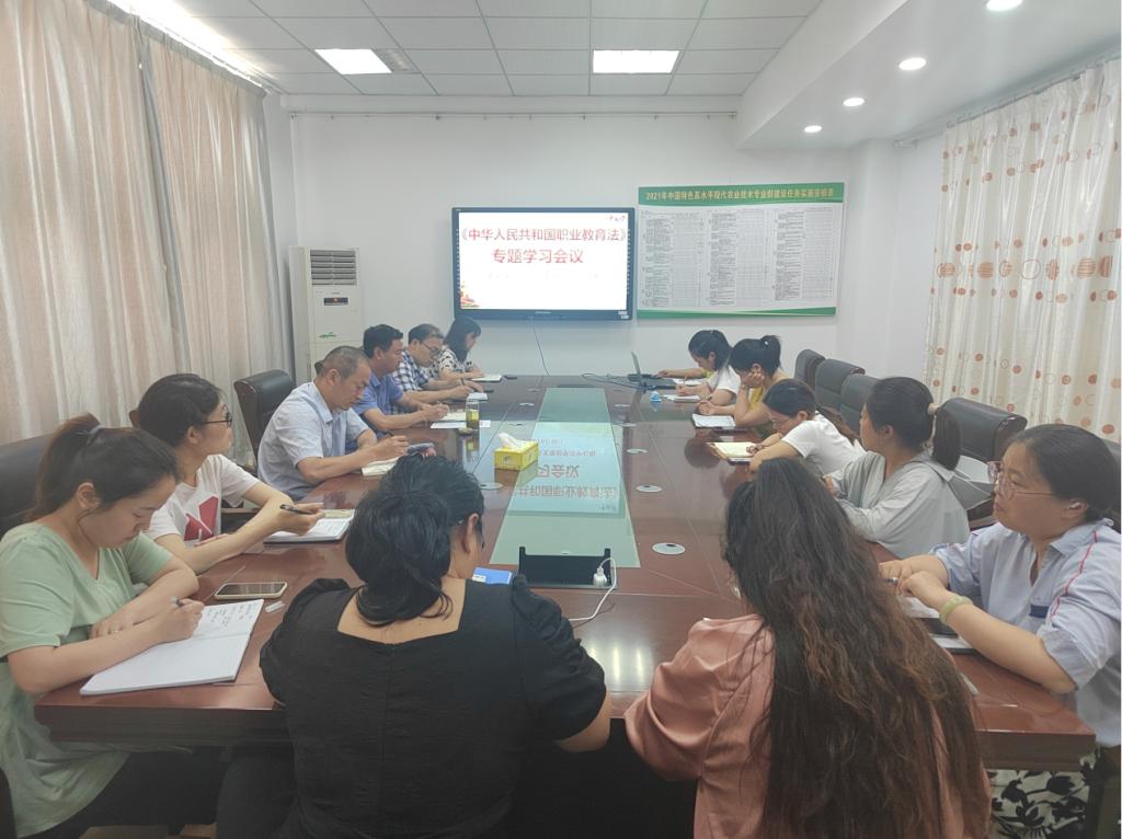 6月16日下午,农学园艺学院党总支理论学习中心组组织学习新修订的《中华人民共和国职业教育法》。党总支组织委员嵇怡同志领学,党总支委员、各支部委员参加学习。