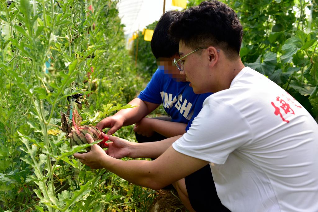 活动中,志愿者先与孩子们一起采摘并品尝了甜瓜、西瓜、小番茄等各种水果,孩子们从听觉、视觉、触觉、嗅觉和味觉等五官全方位感受,亲身体验,在感受到大自然美好的同时,丰富知识,开阔眼界,体验集体活动的快乐。随后,大家又一起欣赏了空气凤梨。志愿者们详细介绍了空气凤梨的形态特征以及生长特点,让孩子们对其有了详细的了解。接着又讲解了提高空气凤梨的美感、日常的定期养护等知识,孩子们边看边听,在实践中学到了不少养护空气凤梨的好方法。