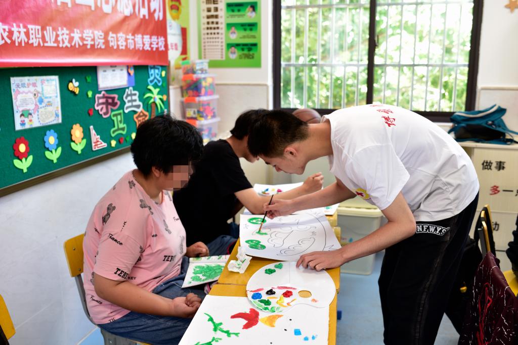 6月19日,江苏农林职业技术学院“园艺助童,博爱万家”暑期社会实践团在句容市博爱学校开展“画出童心自然美,守护一张天使笑”油画主题活动,让孩子们提高对色彩的认知,用画笔勾勒出美好生活。