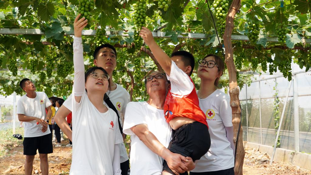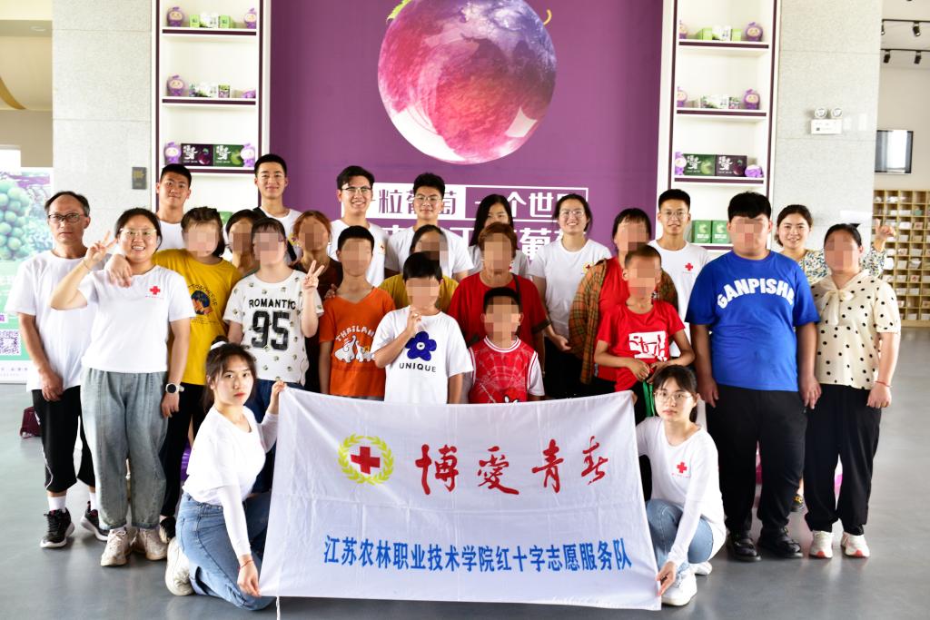 为了能使孩子们学习了解葡萄植株的发展以及葡萄果实、包装,亲身感受大自然,6月21日,江苏农林职业技术学院“园艺助童,博爱万家“暑期社会实践团带领博爱学校的特殊儿童们去往丁庄葡萄园开展”葡萄园“小课堂主题活动。