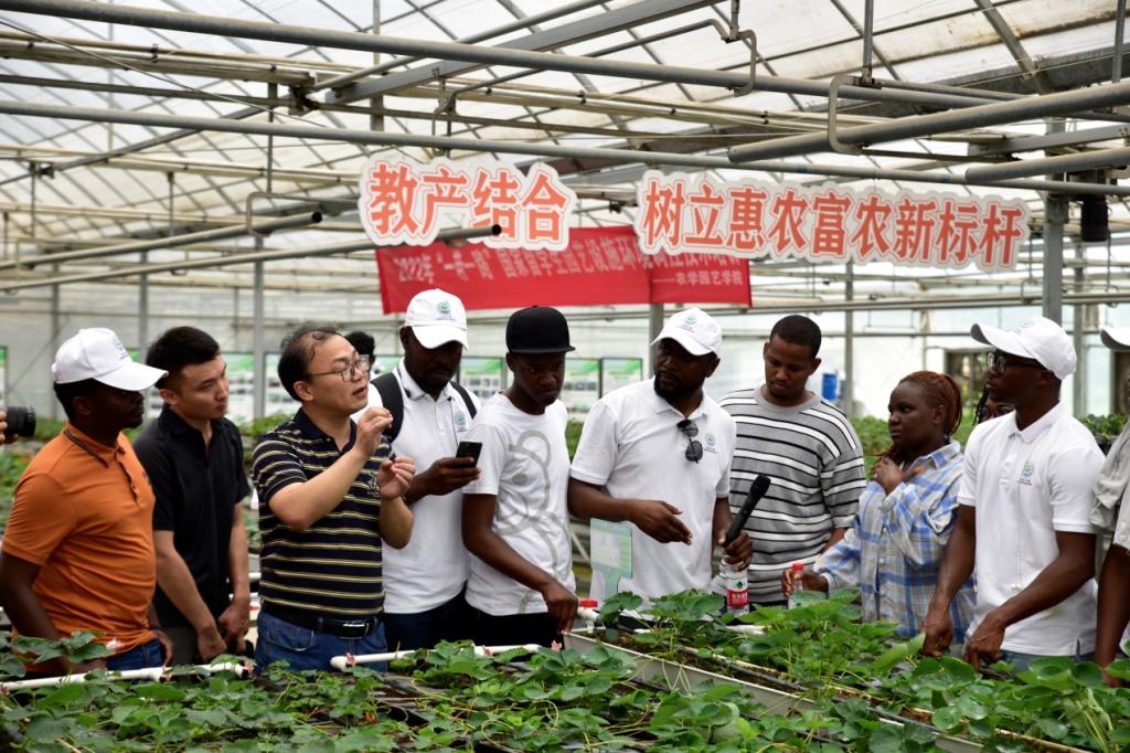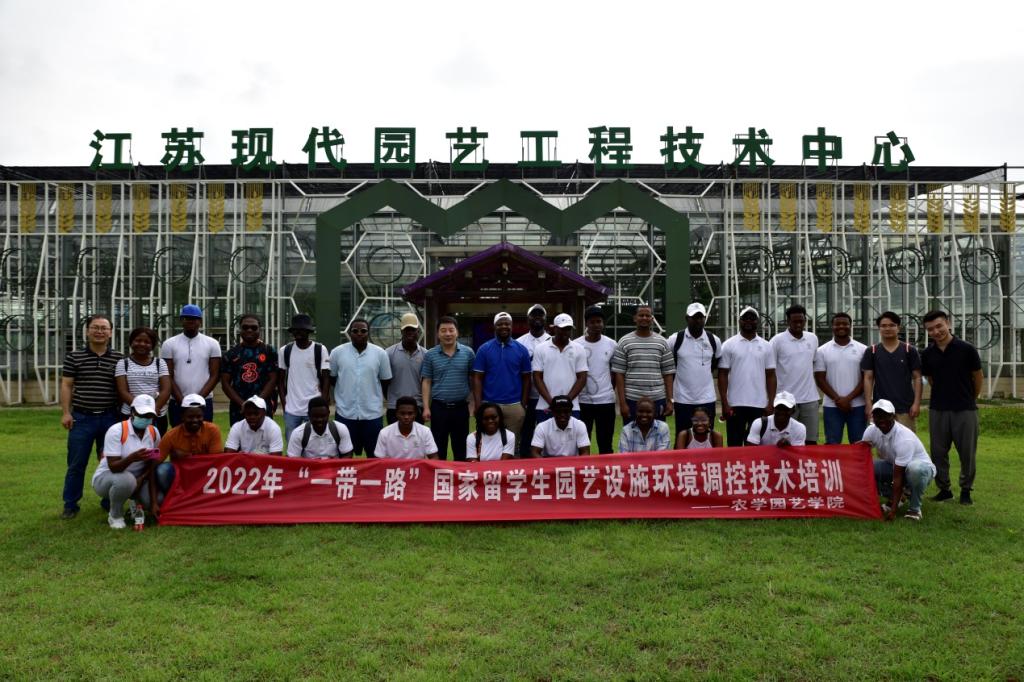 为积极响应“一带一路”倡议,加强国际教育的交流与合作,培养面向“一带一路”沿线国家的技术技能人才,7月7日~30日,我院与江苏大学海外教育学院联合举办“一带一路”国家留学生园艺设施技术技能培训班,来自7个国家的28名江苏大学留学生参加了培训。7日上午,园艺设施技术技能培训班开班典礼在江苏农博园实训基地举行,农学园艺学院院长颜志明、相关专业教师,江苏大学梁老师等参加了开班典礼。