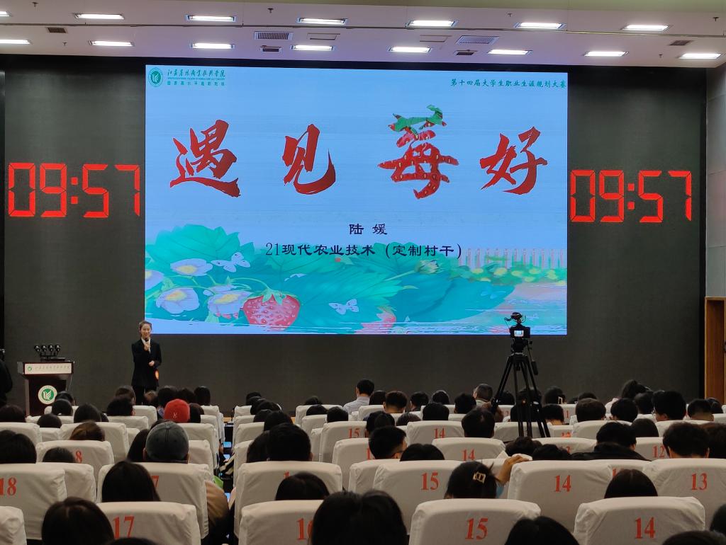 本次大赛的主题是“生涯逐梦,职赢未来”,经过初赛、复赛,共有10名选手脱颖而出进入决赛。比赛中,选手们通过PPT围绕自我认知、职业认知、职业决策、计划与路径、评估与调整等方面进行了精彩的陈述。现场答辩环节中,评委老师在对选手的职业规划和现场应变能力进行考察的同时,帮助选手们更加深远地思考和剖析自己职业发展中可能面临的问题,并结合职业前景、实现路径等循循善诱,给予中肯评价和切实建议。选手们自信大方的陈述和全面清晰的作答获得了阵阵掌声。经过激烈的角逐,来自21现代农业技术(定制村干)2班的张俊亚获得特等奖。