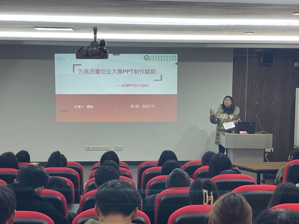 12月7日,农学园艺学院在创客空间307举办“为高质量创业大赛PPT制作赋能”专题讲座,此次讲座由学院团委书记嵇怡主讲。