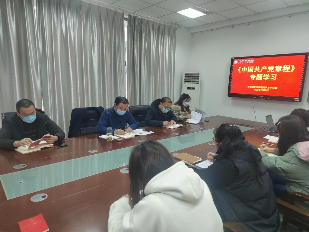 12月8日,学院理论学习中心组在研A204召开学习会,重点学习新修改的《中国共产党章程》,把学习党章与学习党的二十大精神有机结合,推动党的二十大精神宣传贯彻落实。学习会由党总支书记杨宝林主持,各支部委员参加学习。