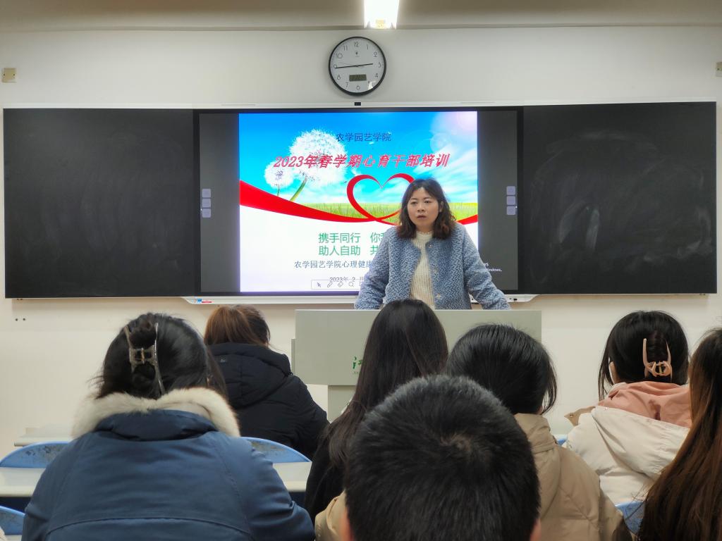 自助自力,共同成长。为进一步提高心育干部的工作积极性,提升工作能力,确保本学期心育工作的顺利开展,2月22日下午农学园艺学院心育部在J1-B105教室召开本学期心育干部培训会。会议由陈洁老师主持,学院心育部全体成员与心育委员参加。