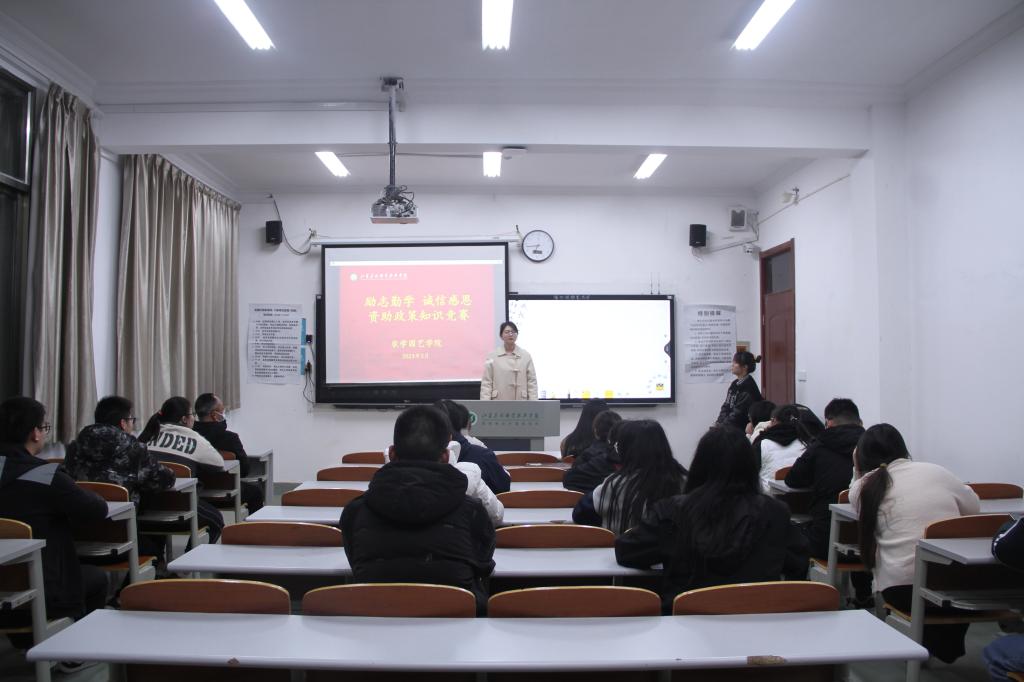 为引导广大学生了解国家和学校的各项资助政策,普及征信、金融相关知识,有效防范金融风险诈骗,营造"励志勤学 诚信感恩"的校园氛围,弘扬资助育人的良好风尚,农学园艺学院于3月1日在文科楼206室举行了“励志勤学 诚信感恩”资助政策知识竞赛。
