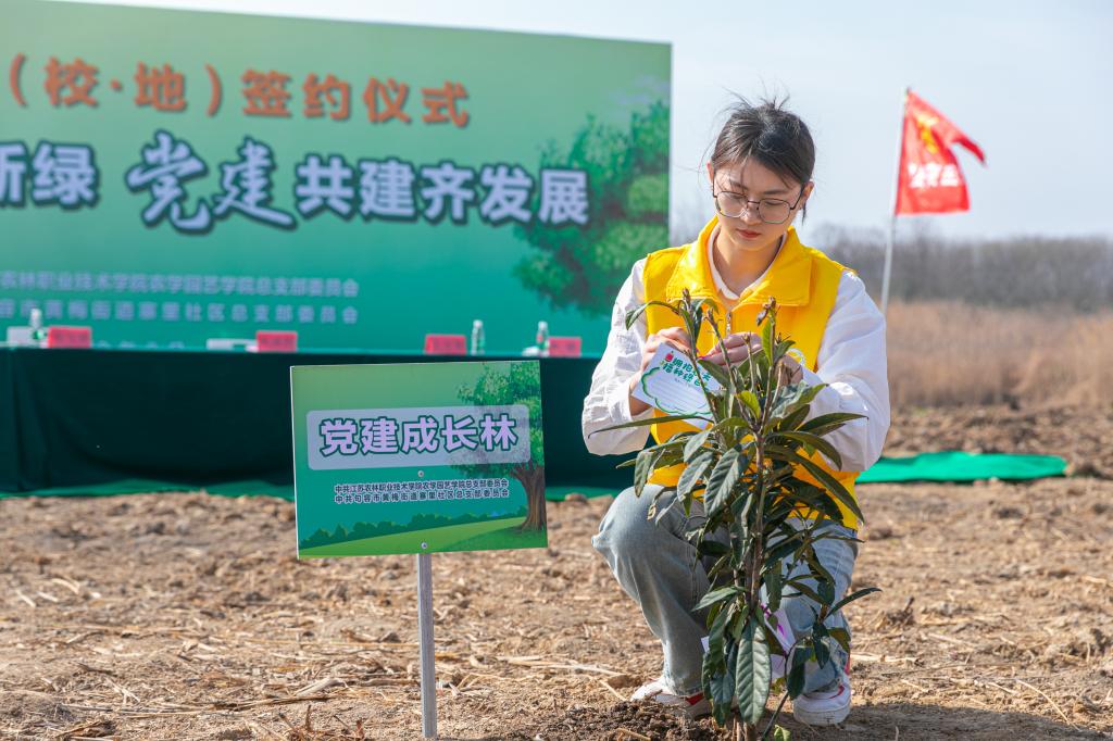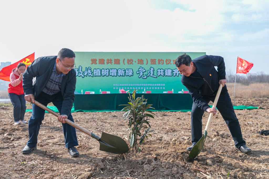 3月10日上午,农学园艺学院在句容市寨里社区开展了一场别样的党建共建活动。来自新禾助农服务团的40余名师生来到寨里社区共同打造“党建成长林”,既诠释了“绿水青山就是金山银山”的理念,又把党史学习教育延伸到田间地头,共谋乡村振兴“金点子”。