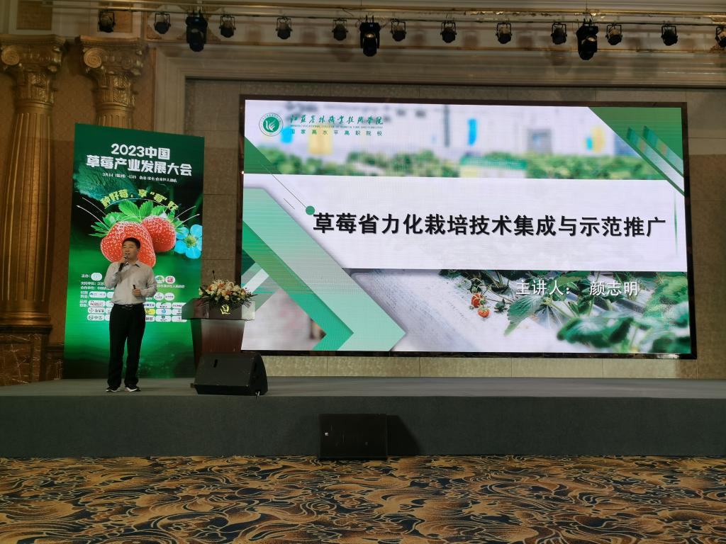 3月15日,由中国农业技术推广协会主办,江苏省草莓协会、南京金色庄园农产品有限公司、《农资与市场》传媒承办的2023中国草莓产业发展大会在南京溧水区恒大酒店举行。全国脱贫攻坚楷模、时代楷模赵亚夫荣等800多草莓人齐聚一堂,共谋我国草莓产业高质量发展。农学园艺学院院长、江苏省现代农业(草莓)产业技术体系副首席专家颜志明教授受邀参加并做题为《草莓省力化栽培技术集成与示范推广》的主题报告。