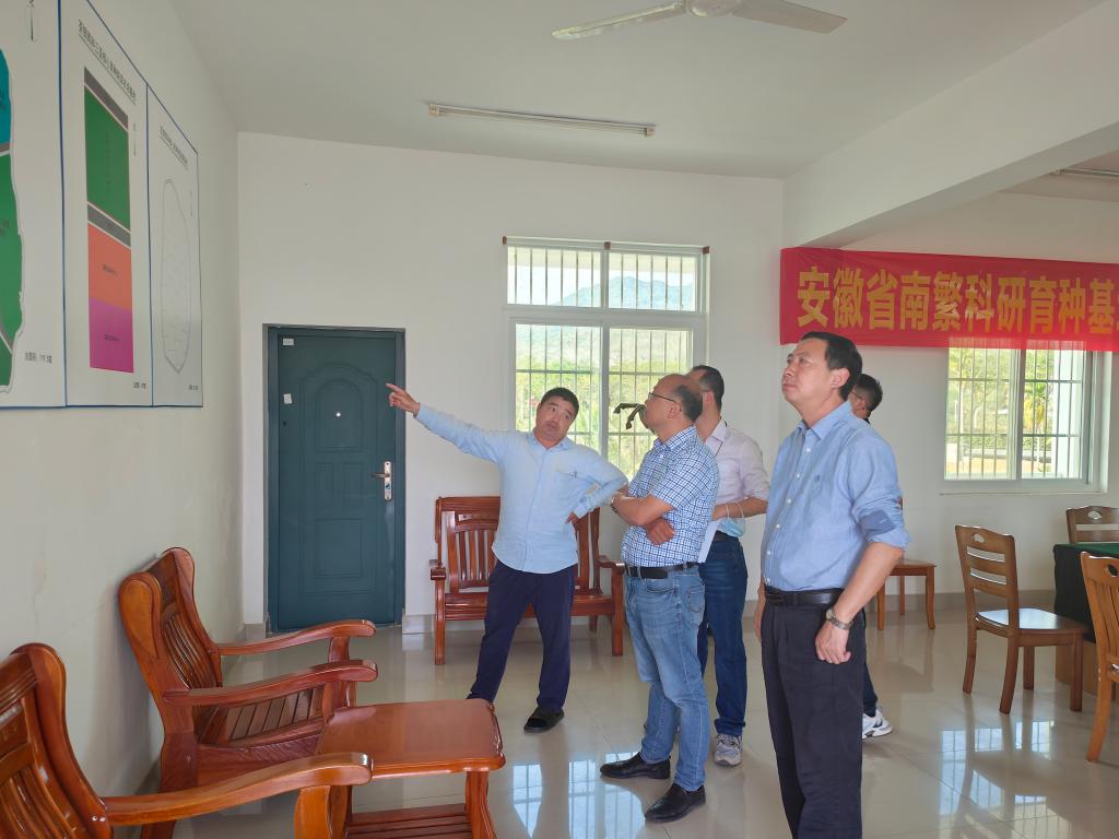 在海南三亚的安徽荃银高科种业股份有限公司,调研团队在该公司科研部总经理申广勒的陪同下,参观了荃银高科三亚核心育种槟榔基地,了解了实践基地的整体运行情况,并收集到荃银高科种业股份有限公司对此次调研工作提出的宝贵意见和建议。