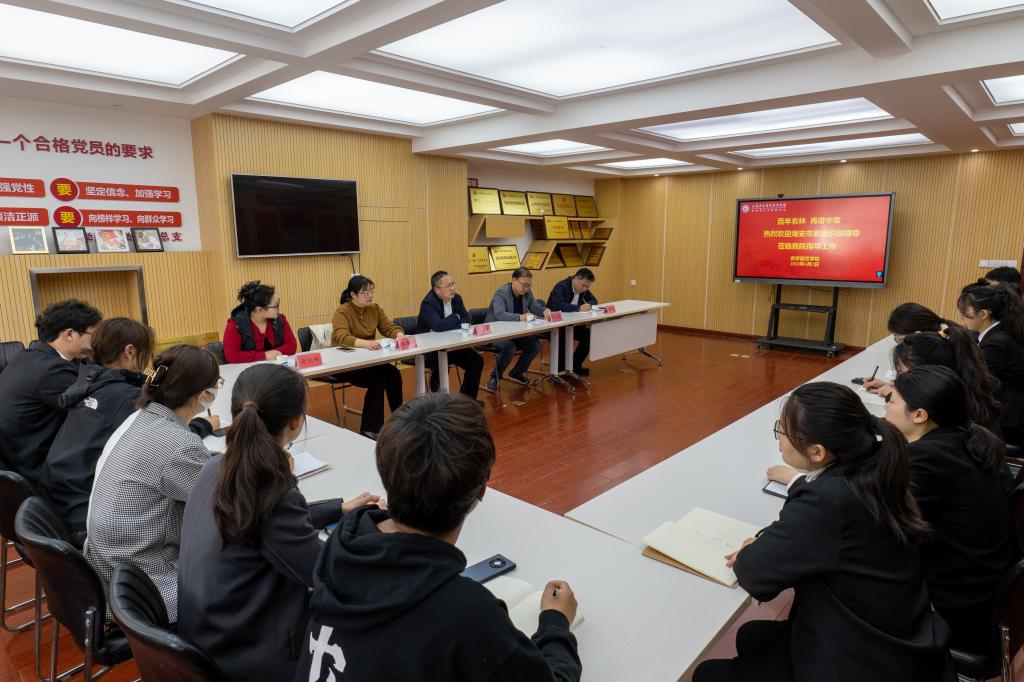 4月2日上午,海安市委组织部部务委员、人才办主任王桂江一行来校调研交流。校妇联主席杨春梅、农学园艺学院党总支副书记王全智、现代农业技术专业教研室主任赵艳玲及海安籍“定制村干”代表参加座谈会。