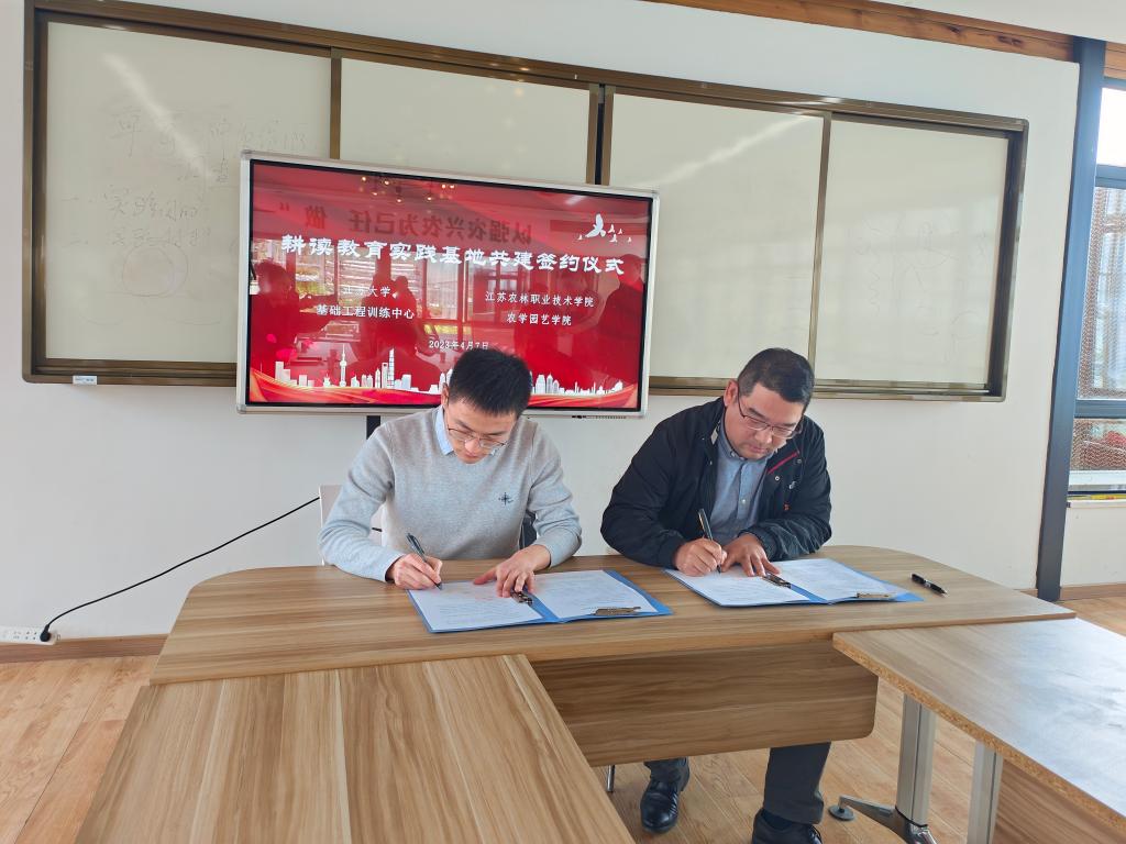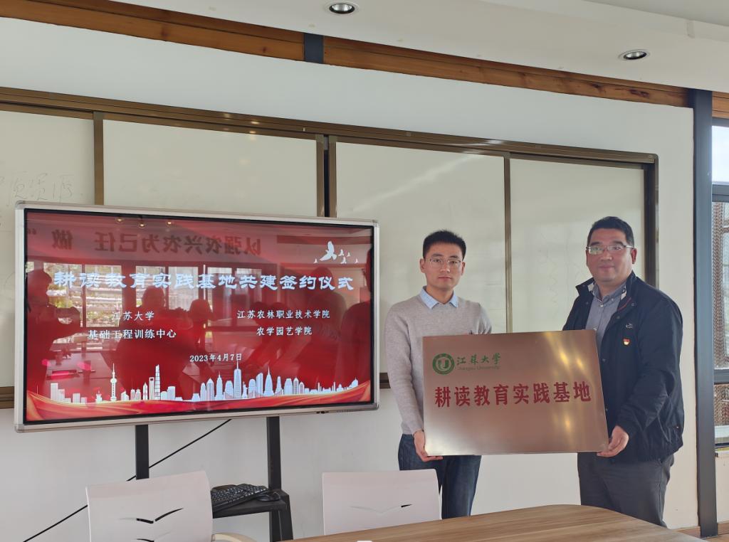 为深入贯彻落实教育部《加强和改进涉农高校耕读教育工作方案》(教高函〔2021〕10号)文件精神,强化校校共同育人成效,2023年4月7日,我院与江苏大学基础工程训练中心签订共建耕读教育实践基地合作协议,并举办耕读教育实践基地授牌仪式。江苏大学基础工程训练中心副主任吕翔、教学部主任秦犹、我院副院长张庆、现代农业教研室主任赵艳岭及基地教师孙朋朋出席了授牌仪式。