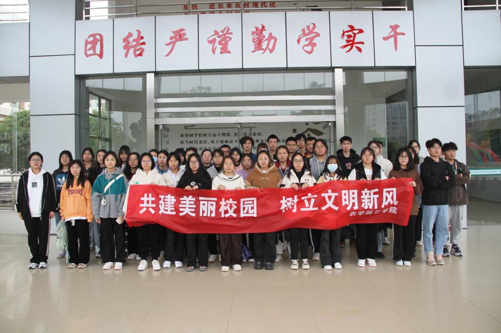 为强化大学生思想道德素质和志愿服务精神,争做一名合格的志愿者,构建和谐美丽的校园,4月6日下午农学园艺学院在教学楼开展了以“共建美丽校园,树立文明新风”为主题的校园清扫志愿活动。