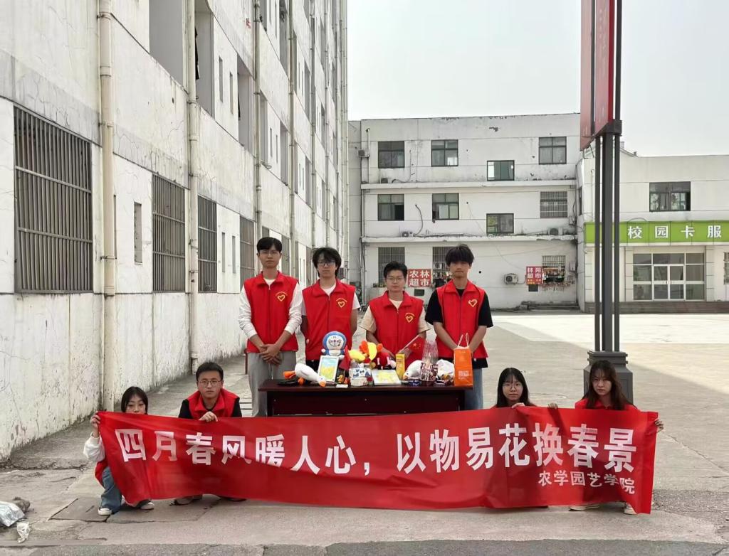 为了丰富大学生的课余生活,传递爱与正能量,4月11日下午,农学园艺学院在食堂旁举办了“四月春风暖人心,以物易花换春景”主题活动。