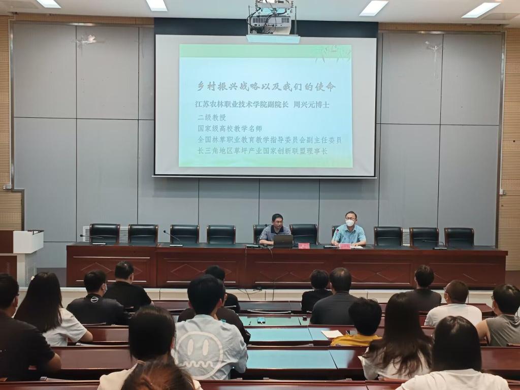 周兴元副院长从中国乡村发展历史及世界各国乡村发展概况,引导学生逐步了解我国“三农”事业的发展进程,实施乡村振兴战略的意义,对我国乡村振兴战略的美好发展态势进行了全面系统的讲解,鼓励同学们肩负起新时代乡村振兴的使命。提出“用现代物质条件装备农业,用现代科学技术改造农业,用现代产业体系提升农业,用现代经营形式推进农业,用现代发展理念州领农业,用培养新型农民发展农业,提高农业水利化、机械化、信息化水平,提高土地产出率和农业劳动生产率,为强农大业贡献力量。”