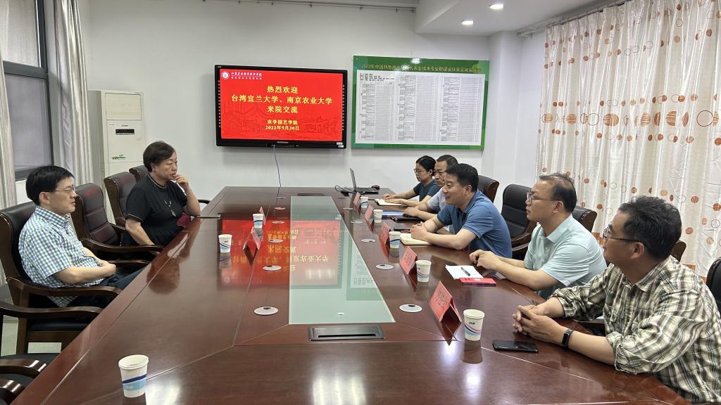 讲座结束后,农学园艺学院院长颜志明及相关专业负责人与两位教授一起参加了交流座谈会。颜志明院长首先就农学园艺学院的办学特色、专业建设、实训基地等方面做了详细的介绍,随后双方就涉农专业人才培养等方面进行了深入交流与探讨。朱玉教授和徐国华教授还参观了江苏农博园实训基地。