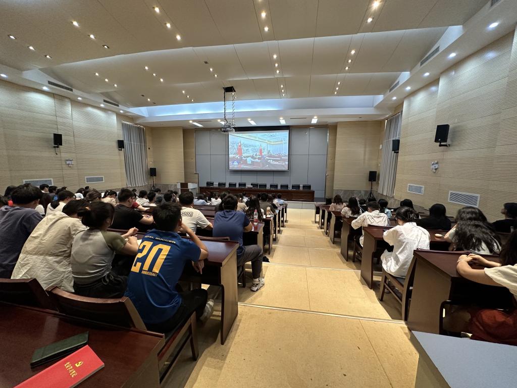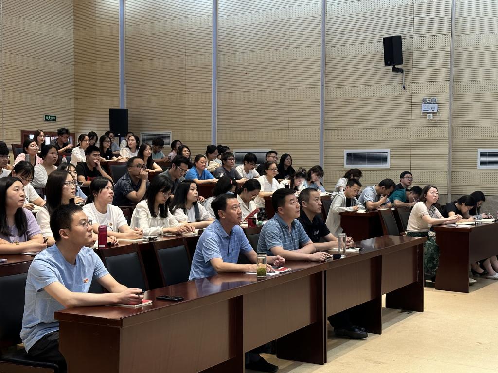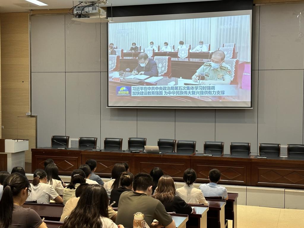6月14日,学院集中开展教职工理论学习,党总支书记杨宝林主持集体学习会,传达学习习近平总书记在中共中央政治局第五次集体学习时的重要讲话精神,全体教师和部分学生代表收看了新闻联播专题报道。