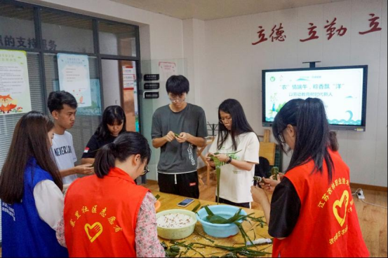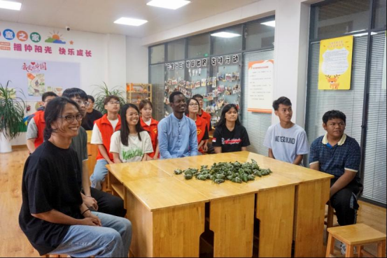 随后,留学生们与学院团员代表来到了学院共建社区——寨里社区开展端午节活动。同学们通过“环包端午·粽情传递”“聆听端午·你讲我译”“传递端午·接艾纳福”三个环节的活动,不仅体验了包粽子,感受到了中国传统文化的魅力,而且也为中外学子搭建了跨文化交流的平台,增进了彼此间的友谊。