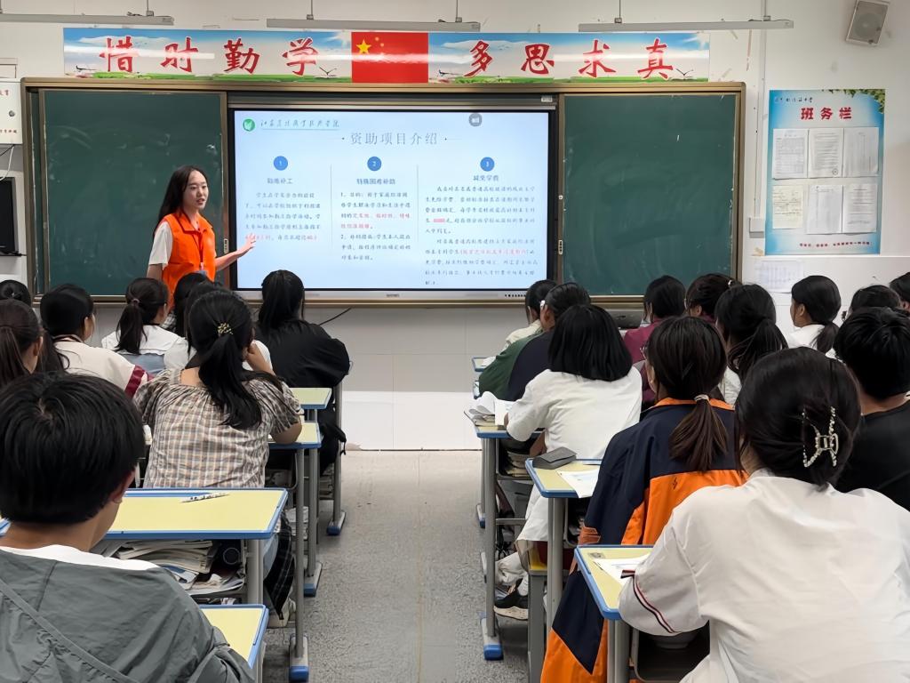 在实践活动启动仪式上,团队指导教师黄帅对实践团成员进行政策宣讲培训,对于国家和校内资助项目进行了详细的解读。通过培训,成员们对资助的各项内容有了明确的认知,对此次实践活动有了清晰的目标。实践中,“学生资助宣传大使”们深入母校、社区、困难生家庭进行走访宣讲。通过PPT讲解、视频播放、发放国家资助政策宣传折页等形式进行集中宣传,详细介绍了国家教育资助政策体系、具体资助项目等内容,帮助高中生以及准大学生们全面了解国家资助政策的具体内容。让他们能够结合家庭实际情况,从资助政策中寻求到有效解决问题的途径和方法。同时,成员们也回访了曾受过资助的学姐学长们,听他们讲述在校期间自立自强、刻苦学习的心路历程。