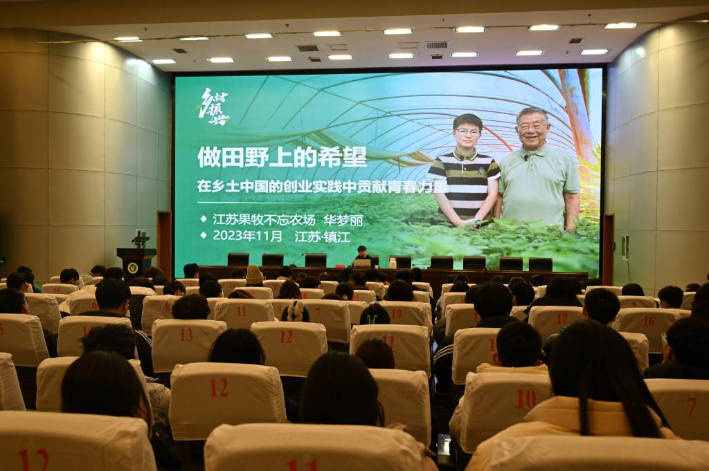 报告中,华梦丽分别从镇江很有前途--学农创业,不忘初心;农村广阔天地--择农业,倍受关注两个方面分享了自己的创业故事,并鼓励广大学生要自讨苦吃,立志做田野上的希望,成为农村注入生机与活力的“新农人”,振兴乡村的“兴农人”。