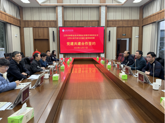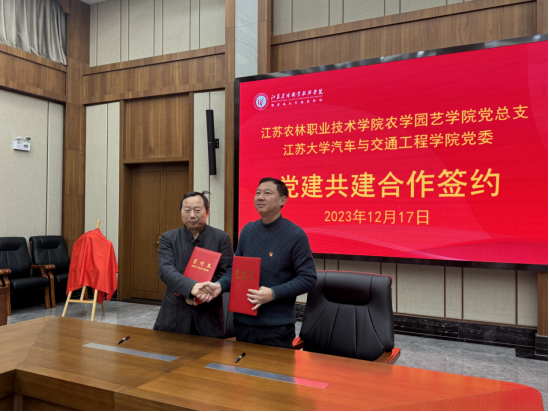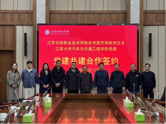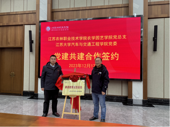 为贯彻落实全国职业教育大会精神和《国家职业教育改革实施方案》,落实党的二十大报告关于“统筹职业教育、高等教育、继续教育协同创新,推进职普融通、产教融合、科教融汇,优化职业教育类型定位”重要指示精神,12月17日,江苏农林职业技术学院农学园艺学院党总支与江苏大学汽车与交通工程学院党委党建共建合作签约仪式暨“耕读教育实践基地”揭牌仪式在江苏农博园会议室举行。