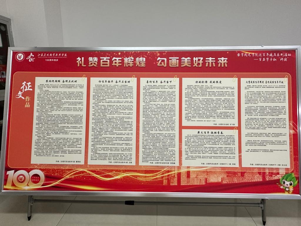 本次活动,共收集到作品160多份,包括摄影、绘画、书法、手抄报,征文等创作作品。作品形式丰富多彩,内容感情深切,积极向上,全面展现了农林学子对学院百年华诞的殷殷期望,为百年辉煌成就而自豪的心情。作品经过评选,在研发楼一楼宣传展览,为百年校庆增添了活力生机。