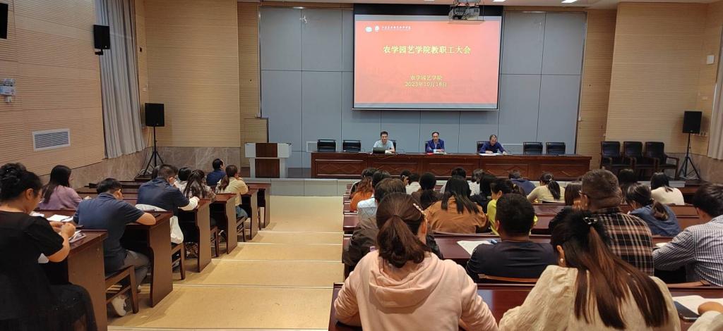 10月18日,学院全体教职工大会在研发楼报告厅举行,学院领导班子成员及全体教师参加会议。会议由学院院长解振强主持。