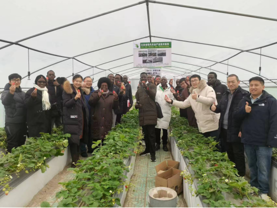 1月8日,乌干达科技部部长莫妮卡·穆斯内罗·马桑扎博士等与中航国际成套设备有限公司领导一行27人到我院草莓实训基地考察学习。农博园基地主任王全智和学院副院长贾思振陪同考察。