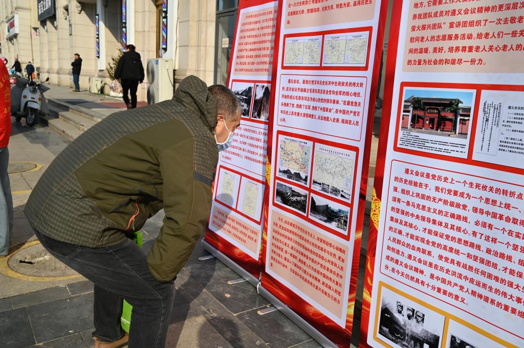 在活动现场,宣讲团成员通过精心准备的遵义会议精神展板,生动形象地向大家介绍了遵义会议的历史背景、真实描摹了特殊时期的历史危局,讲解了遵义会议基本过程和历史意义、遵义会议精神的主要内涵和重要启示,使大家能够深刻感受到中国共产党领导中国革命的艰辛历程和伟大成就。在互动环节,同学们还对现场参观居民的提问进行了详细解答。