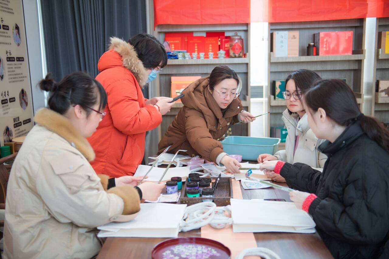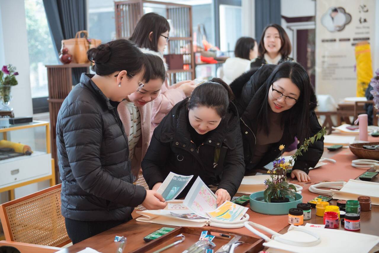 活动邀请老师们来到镇江喜客山堂茶文化有限公司品茶,手绘帆布袋,老师们热情高涨,精心挑选样图,勾画轮廓、涂色、精雕细琢,欢快地交谈,场面和谐而温馨。最后大家手提布袋合影留念,度过了一个健康、快乐、放松的节日。