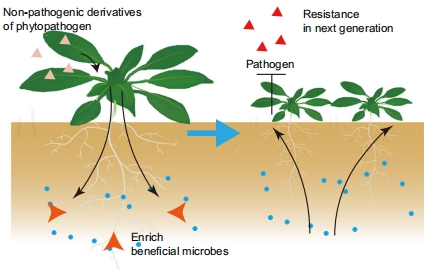 植物受到病原菌侵染后会招募根际的益生微生物,形成具有防控病害、促进植物生长等功能的天然抑病土壤,这种现象被称为“呼救(cry for help)”反应,已在多种作物和模式植物上得到广泛验证和认可。然而经典的“呼救”反应需要接种病原菌才能诱导,这导致该理论在农业生产上不具有应用可行性,而且呼救的机制也不清楚。