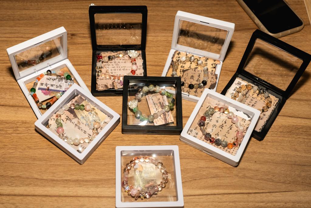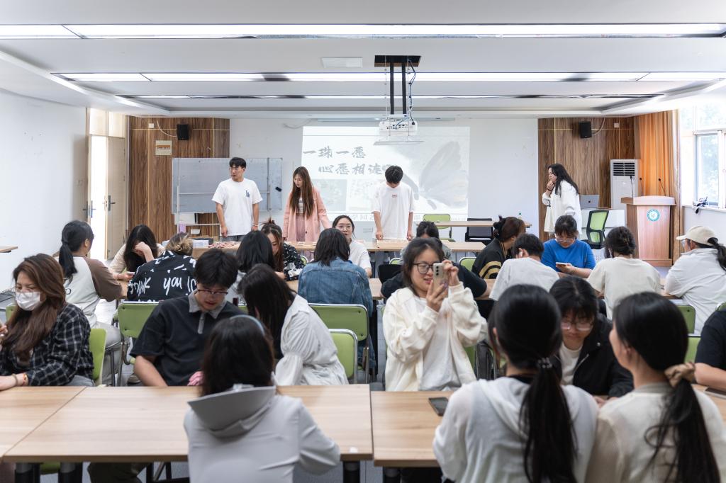 活动中,由工作人员首先进行了专业的串珠教学,向大家详细讲解串珠的要点和技巧。接着,同学们自由选择喜爱的珠子和材料,亲手制作出独一无二的手串。同学们精心挑选、耐心拼接,相互询问意见的同时也相互欣赏着其他同学充满爱的作品。此外,现场还设置了专门的拍照打卡区域,让同学们留下美好回忆。