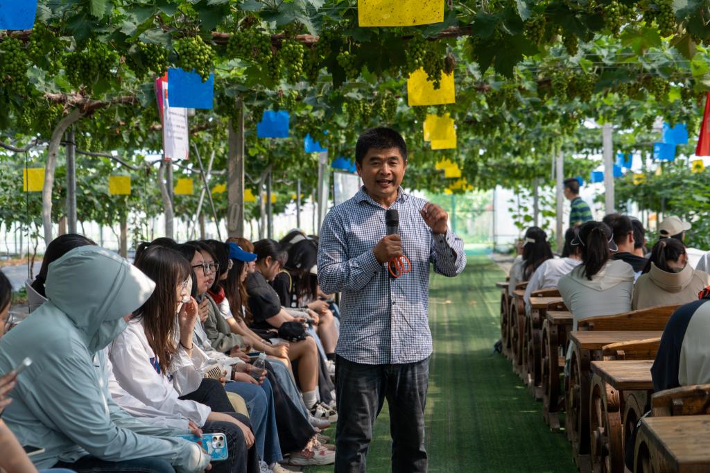 本次党日活动,我们来到了白兔镇致富果业专业合作社张奎峰书记葡萄园。张奎峰书记和蔼可亲,将自身的实践与经验相结合,声情并茂地向同学们分享了自己的从农历程和入党原因。他告诫我们要始终坚持心怀正义,不断探索、钻研,才能跟上时代,更好地为社会做贡献。