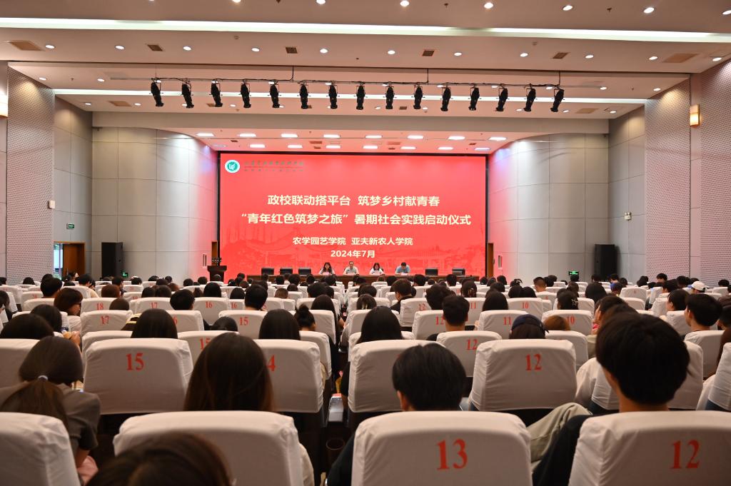 为学习贯彻习近平新时代中国特色社会主义思想和党的二十大精神,引领广大青年学生在社会实践中了解国情、增加阅历、磨炼意志,7月2日晚,农学园艺学院在图书馆报告厅举行第七届“政校联动搭平台,筑梦乡村献青春”青年红色筑梦之旅暑期社会实践启动仪式。农学园艺学院党总支副书记杨淑莉、亚夫新农人学院副院长贾思振、相关指导老师以及300多名定制村干学生参加启动仪式。