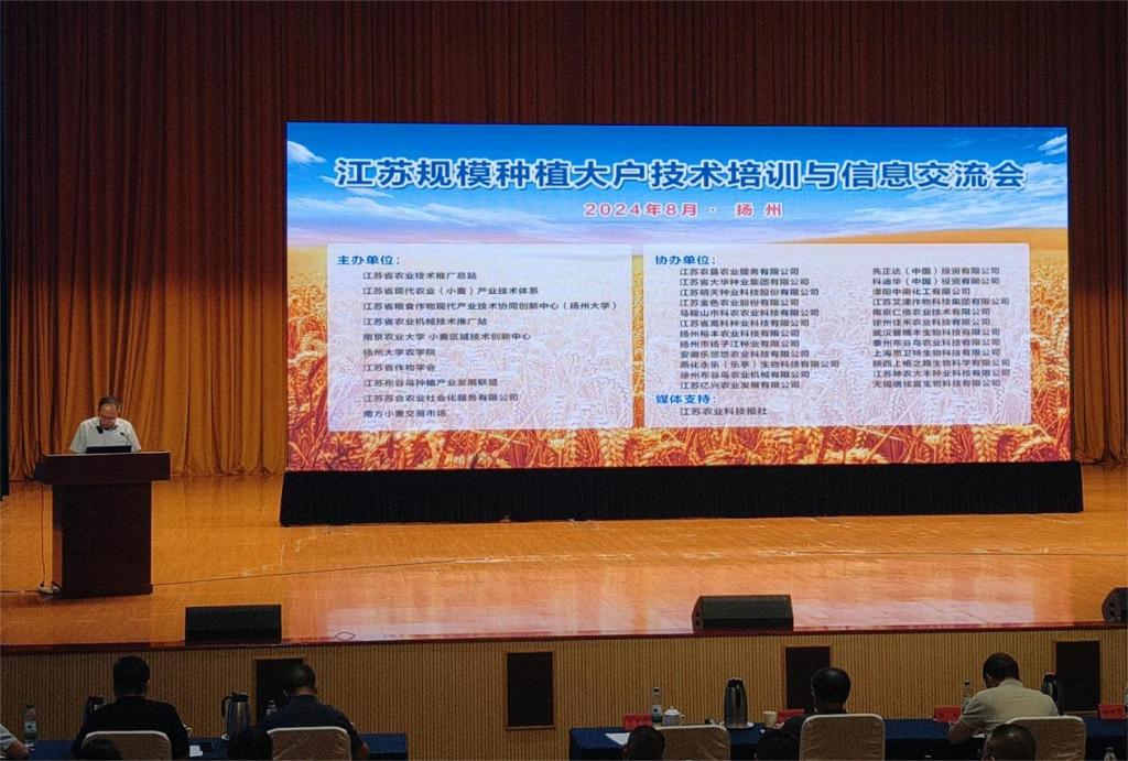2024年8月19至20日,农学园艺学院党总支书记杨宝林带队一行4人参加由江苏省农业技术推广总站、江苏省作物协会等10家涉农单位牵头主办,江苏农垦农业服务有限公司等24家农业企业协办,江苏农业科技报社媒体支持,在扬州会议中心召开的2024年江苏规模种植大户技术培训与信息交流会。