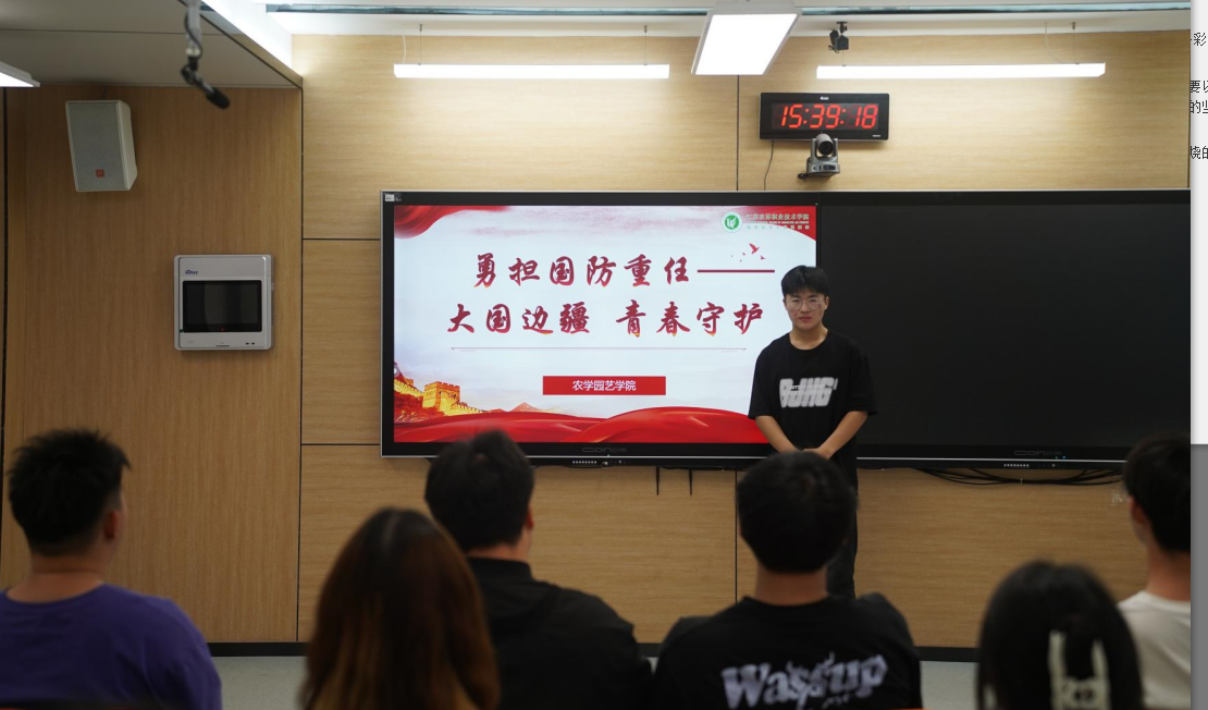 为深入贯彻国家关于加强国防教育的战略部署,激发青年学生的爱国情怀与国防意识,7月1日,农学园艺学院在智慧教室隆重举办了“勇担国防重任”主题活动。此次活动旨在通过一系列丰富多彩的内容,引导青年学生将个人理想与国家需要紧密结合,积极投身国防事业,为守护大国边疆贡献青春力量