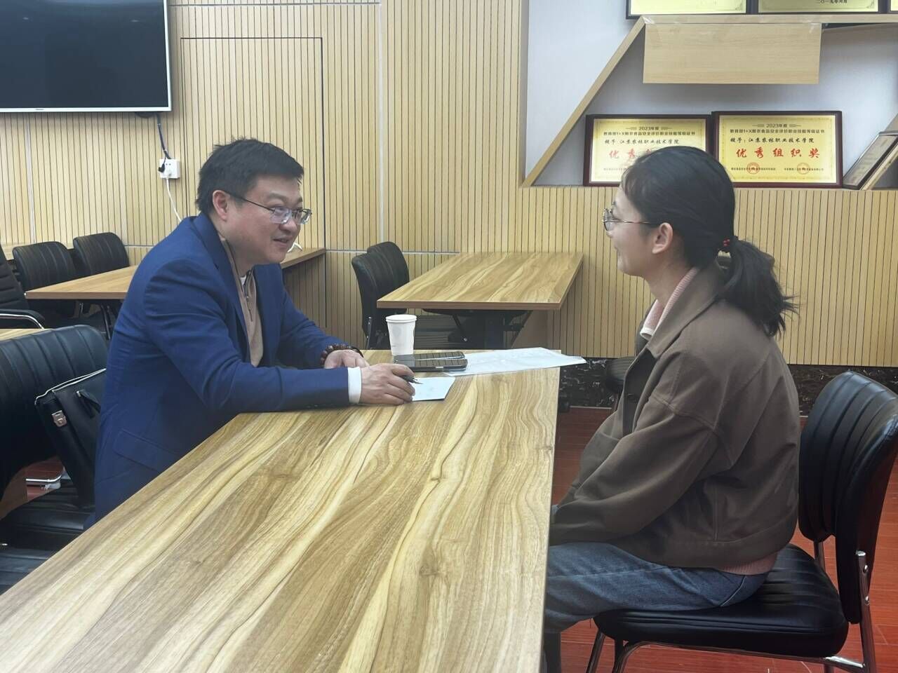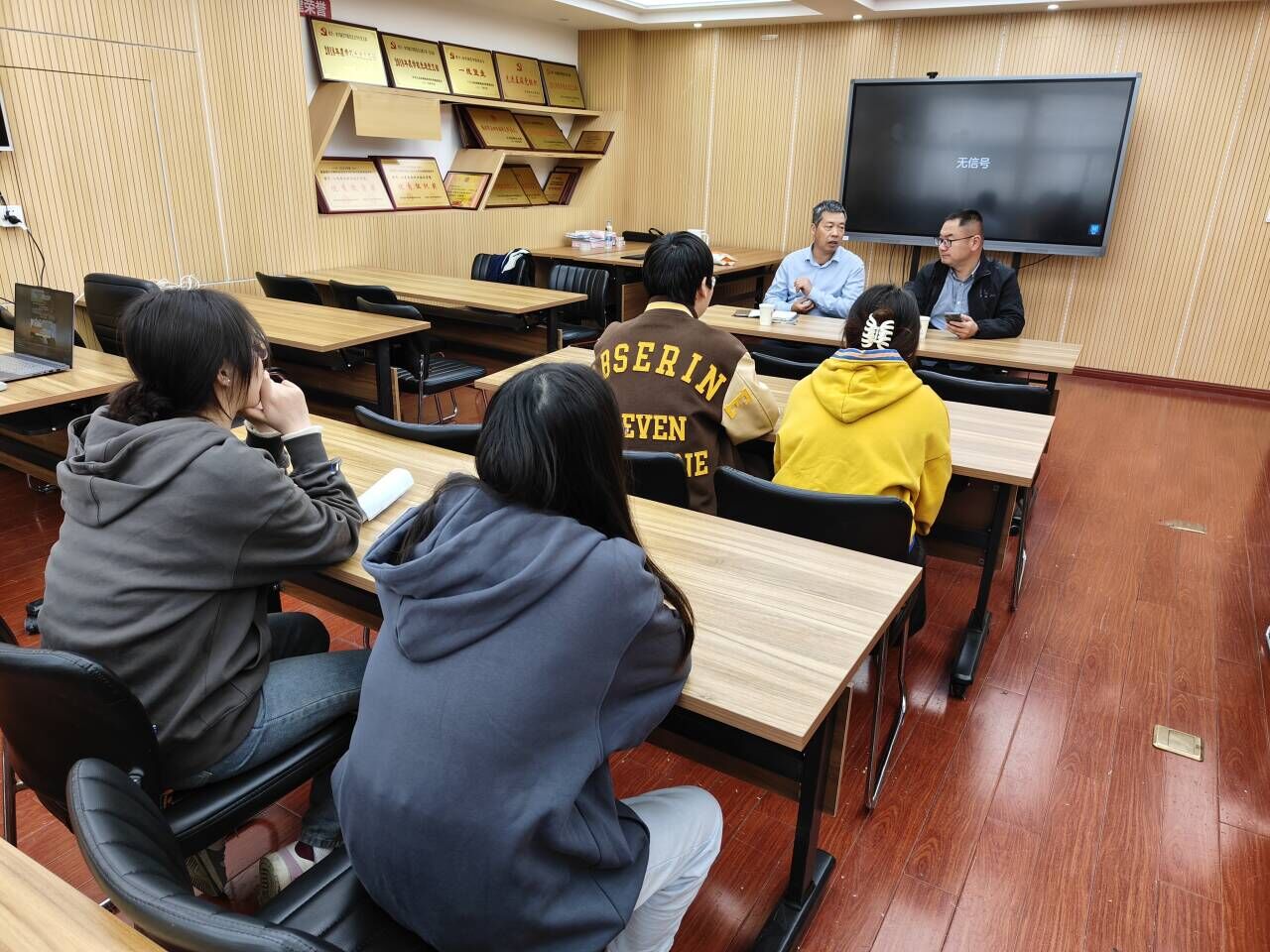 面试前,几家公司对公司的基本情况进行了介绍,并就招聘岗位、薪资待遇、发展前景等进行了详细说明。随后,企业招聘人员进行现场面试,学生积极应聘交流,气氛热烈。