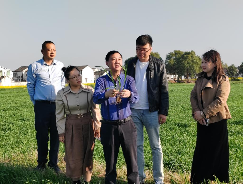 3月25日下午,江苏省作物学会秘书长杨宝林、农学园艺学院党总支副书记董慧带领学院骨干教师一行5人,赴丹阳市延陵镇开展助力地方粮食单产提升行动工作调研。延陵镇副镇长赵春红、丹阳市农业农村局种植业管理科科长范磊、丹阳市粮作站站长赵玉兰、丹阳延陵镇农业服务经营部主任陈建卫、东皇村党总支书记束和平等出席此次调研座谈会。