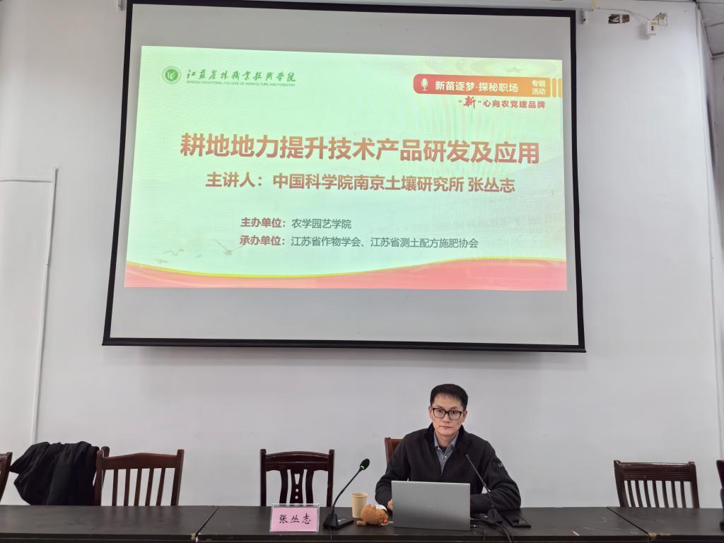 4月2日下午,由农学园艺学院主办,江苏省作物学会、江苏省测土配方施肥协会承办的“新苗逐梦·探秘职场”系列活动之“耕地地力提升技术产品研发及应用”专题讲座在茅山校区报告厅举行,讲座特邀中国科学院南京土壤研究所张丛志研究员主讲,校区200余名师生到场聆听,共同探索耕地保护与科技兴农的融合路径。