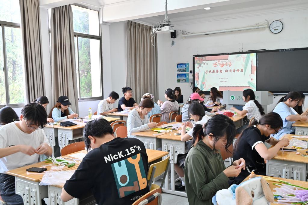为了提高受助学生的感恩意识,增强社会责任感,传承中华民族的优秀传统美德,2025年5月7日,农学园艺学院助学部在文科楼举办了“花束藏萱意,指间寄母恩”感恩主题活动。活动以手工制作扭扭棒花束为载体,吸引了众多学生参与,通过创意手工与心理互动相结合的方式,为母亲节增添了一份别样温暖。