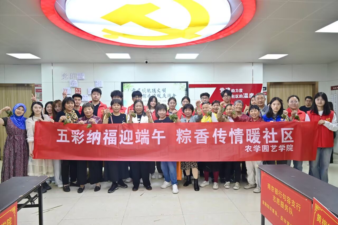在端午佳节来临之际,为弘扬中华优秀传统文化,丰富社区居民精神文化生活,农学园艺学院于5月23日组织师生深入句容市黄梅街道寨里社区,开展"五彩纳福迎端午,粽香传情暖社区"主题活动,打造了一场别开生面的文化盛宴。