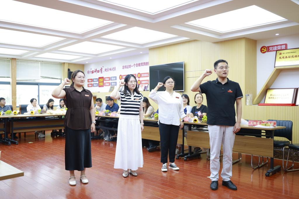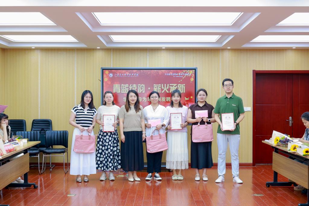 在“青蓝续韵·薪火承新”篇章,举行师徒结对暨“种子传承”仪式,分别设计教学创新组、科研攻坚组、实践育人组三组师徒结对,导师们分别向新教师赠送象征“脚踏实地”的水稻种子、代表“创新突破”的油菜种子和寓意“因材施教”的草种,并附上深情寄语卡片,学院领导为导师颁发聘书,并向新教师赠送包含《师德师风学习手册》、定制电脑包和笔记本在内的“入职礼包”,祝愿新教师开启新的教育生涯篇章。随后,张庆副院长带领新教师佩戴校徽,集体庄严宣读《教师誓词》,这一系列仪式不仅增强了新教师的归属感和荣誉感,更坚定了他们投身教育事业的信念。